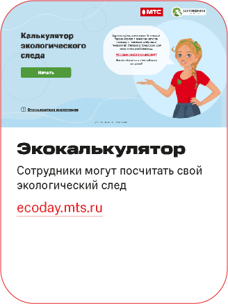 Мы постоянно совершенствуем систему экологического менеджмента компании и соблюдаем требования природоохранного законодательства, национальных и международных стандартов в области охраны окружающей среды. Кроме того, мы уверены, что только совместными усилиями можно добиться устойчивого улучшения состояния окружающей среды ― для этого в МТС реализуется масштабный трек экопросветительских программ, которые помогают широкому кругу пользователей прокачивать навыки ответственного потребления.